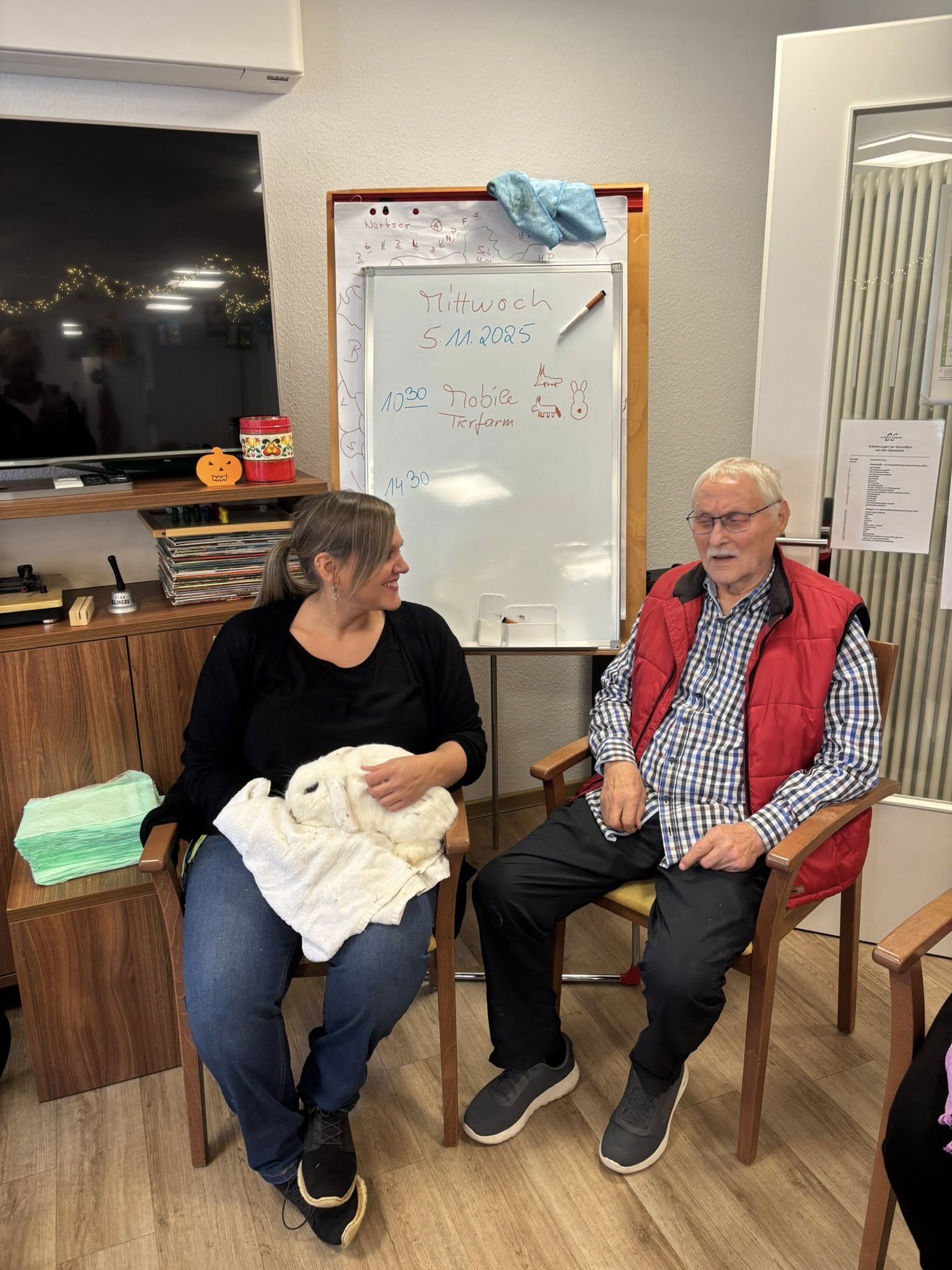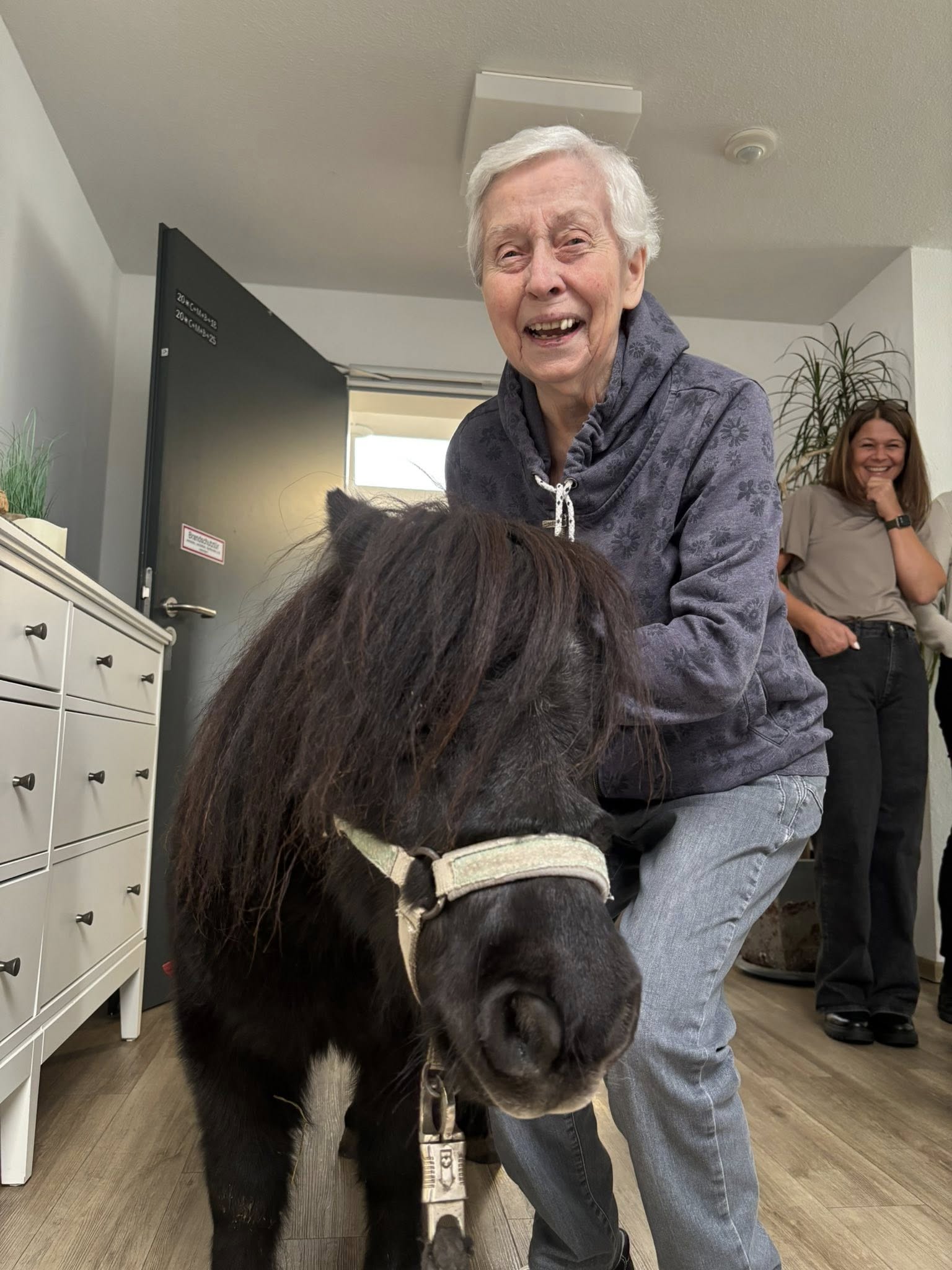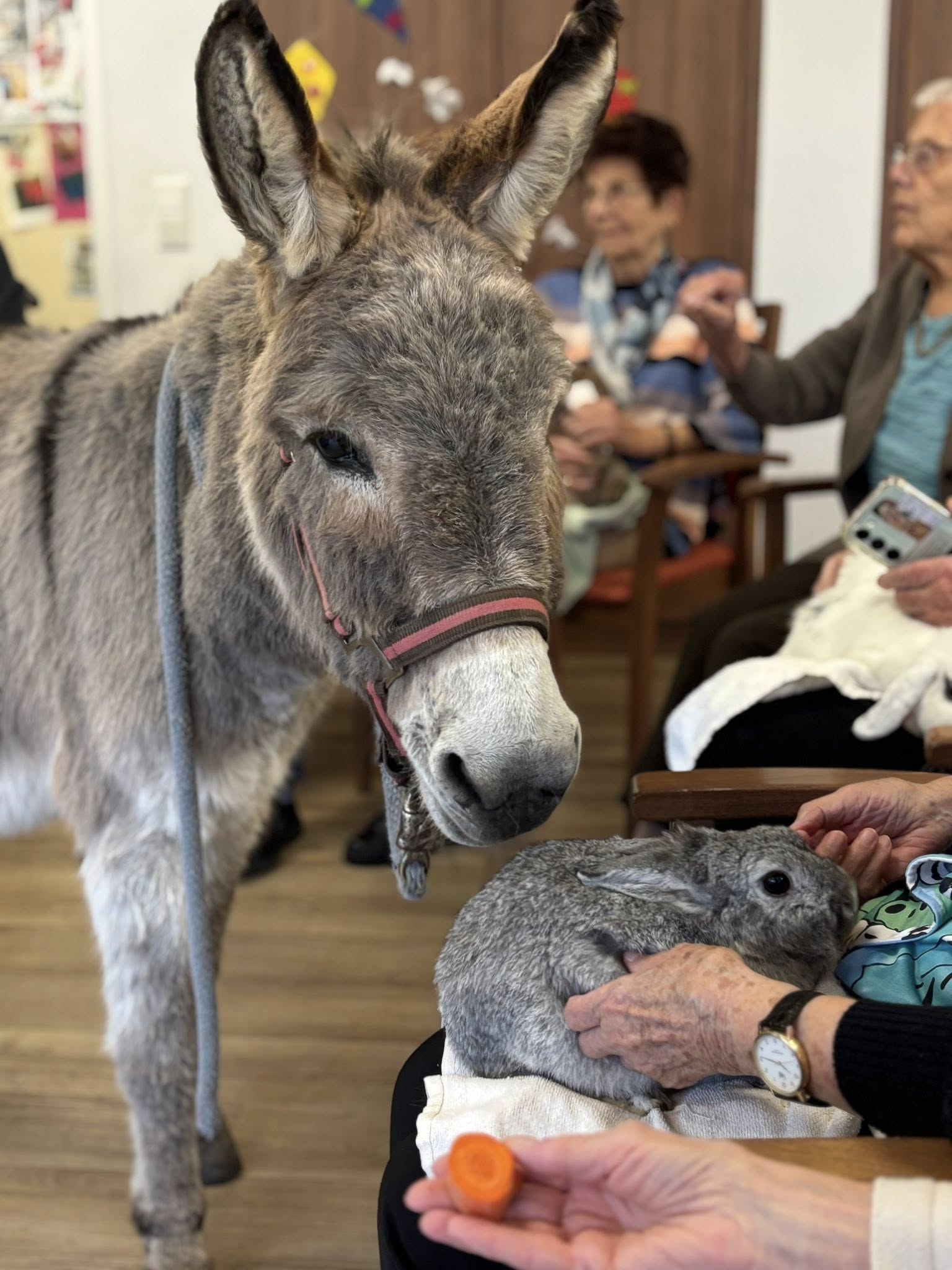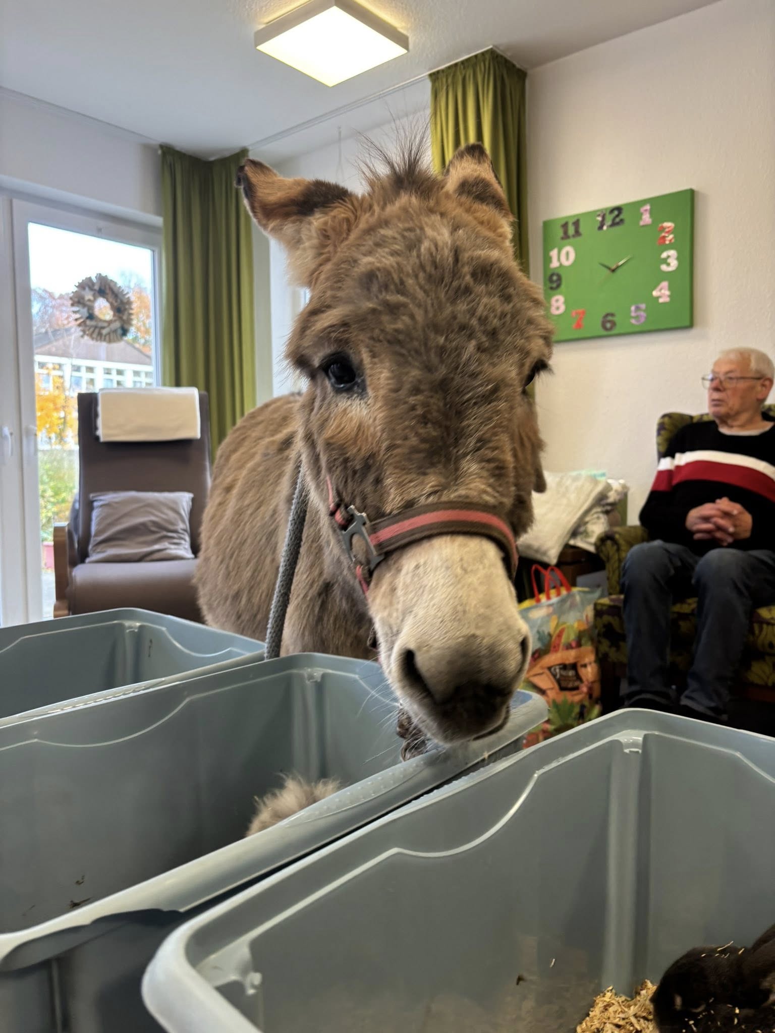 Gabis mobile Tierfarm war bei uns in der Tagespflege und in unseren Wohngemeinschaften zu Gast. Mit dabei waren Pony Jacky, Esel Jonathan, liebe Kaninchen und ein neugieriges Frettchen. Wir hatten viel Freude an den tierischen Begegnungen und genossen den schönen Vormittag in vollen Zügen!